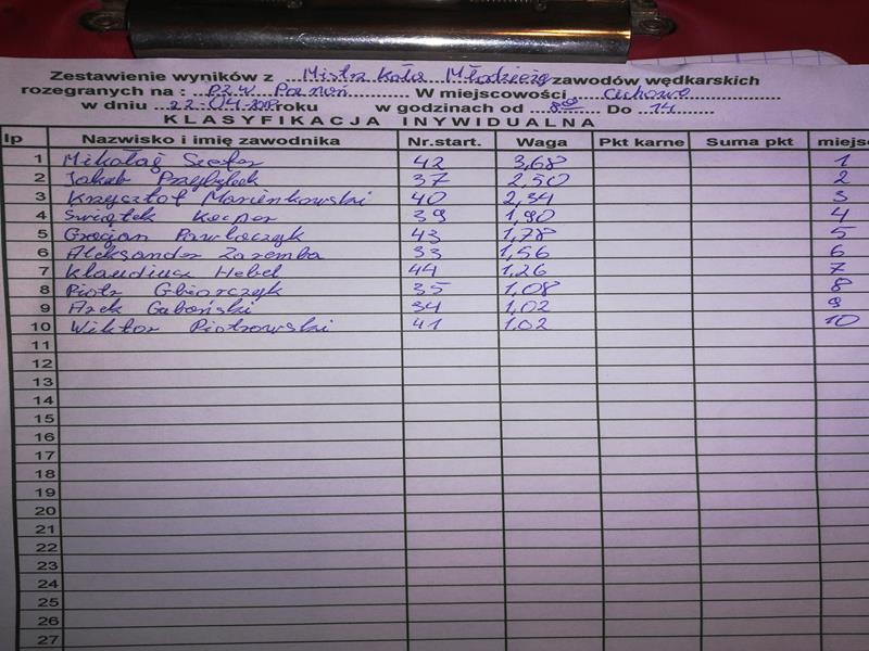SPŁAWIKOWE MISTRZOSTWA KOŁA JUNIORÓW- WYNIKI